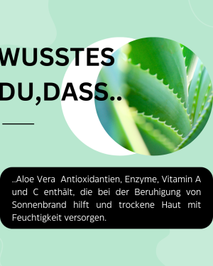 - Beruhigende Wirkung: Aloe Vera ist bekannt für seine beruhigenden Eigenschaften, die empfindliche Haut beruhigen und Rötungen reduzieren können.