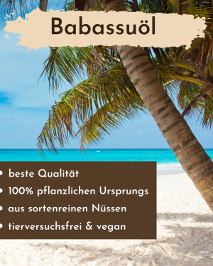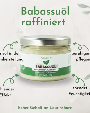 Entdecken Sie das Geheimnis natürlicher Schönheit mit dem raffinierten Babassuöl von Nakobe. Gewonnen aus den Kernen der Babassupalme, ist dieses Öl bekannt für seine feuchtigkeitsspendenden und pflegenden Eigenschaften, die es zu einem Must-have für jede Naturkosmetik-Routine macht.