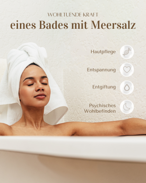 Reich an Mineralien: Das im Badesalz enthaltene Tote Meersalz ist reich an lebenswichtigen Mineralien wie Calcium, Kalium und Natrium. Diese Mineralien stärken die Haut, regulieren das Feuchtigkeitsniveau und aktivieren den Stoffwechsel.