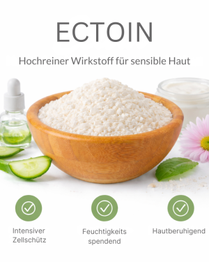 Ectoin ist ein bewährter kosmetischer Wirkstoff, der die Haut intensiv mit Feuchtigkeit versorgt und dabei hilft, sie vor äußeren Stressfaktoren wie Trockenheit, Kälte, Hitze und UV-Belastung zu schützen. Ideal für empfindliche, gereizte oder anspruchsvolle Haut sowie moderne Schutz- und Anti-Aging-Rezepturen.