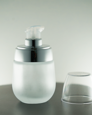Pumpflaschen-Set: gefrostetes Glas mit naturfarbener Pumpe