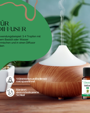 Anwendung: Geben Sie ein paar Tropfen Vetiver-Öl in Ihren Diffusor, mischen Sie es mit einem Trägeröl für die Hautpflege oder fügen Sie es Ihrem Bad hinzu, um ein entspannendes Wellness-Erlebnis zu genießen. Die Anwendungsmöglichkeiten sind vielfältig und lassen Ihrer Kreativität freien Raum.